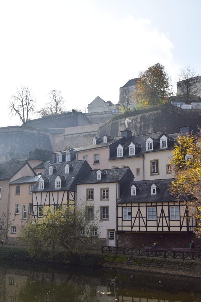 Luxembourg City's Grund neighborhood, situated in the valley below the city centre on the banks of the Alzette River.